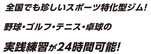 全国でも珍しいスポーツ特化型ジム!野球・ゴルフ・テニス・卓球の実践練習が24時間可能!