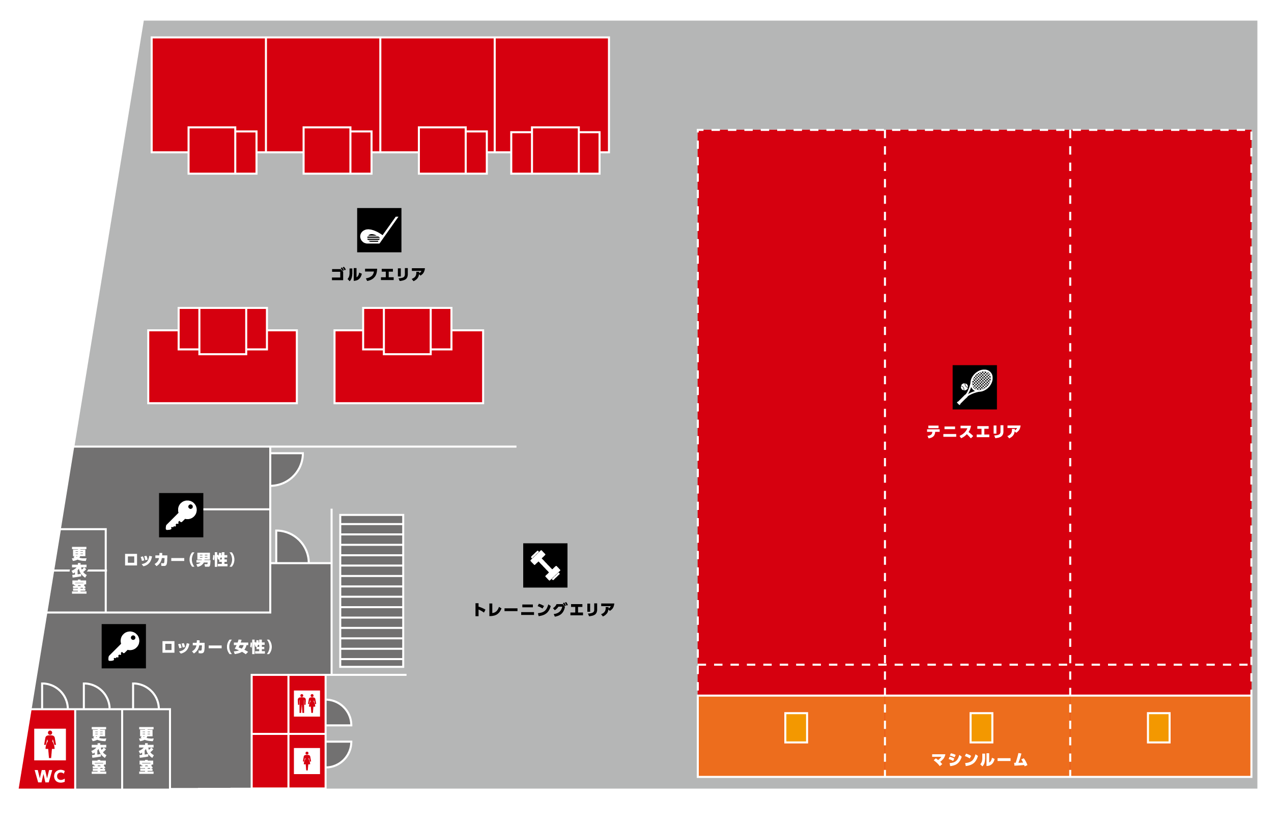 オートテニス(3台)で使用される本格テニスコート用マシン。オートテニスDX-BSを導入。ストローク練習やボレー練習も自由自在。